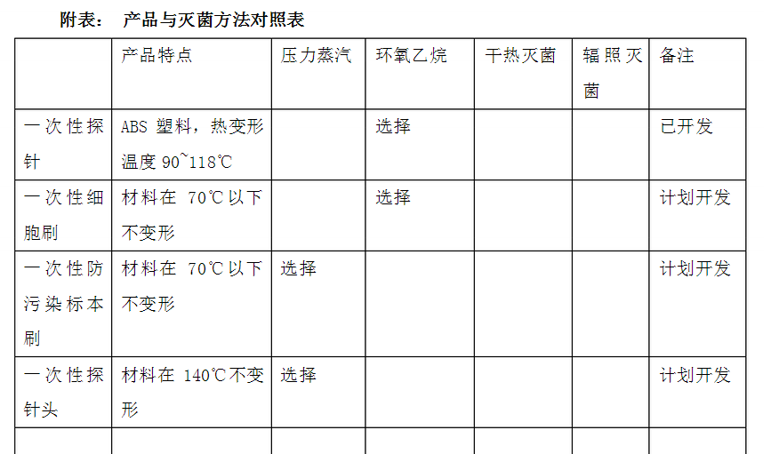 綜上所述,依據(jù)商品熱變形溫度和滅菌條件,一次性探針和一次性細(xì)胞刷選用環(huán)氧乙烷滅菌;防污染標(biāo)本刷選用壓力蒸汽滅菌和無菌加工。