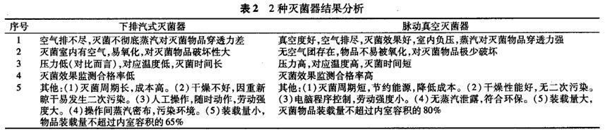 綜上所述,對兩種滅菌器進行對比得出脈動真空滅菌器,真空度好,內(nèi)室無空氣死角,利于蒸氣穿透物品。