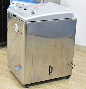 實驗室中zui常見的高壓蒸汽滅菌器是重力置換式。飽和蒸汽通過蒸汽壓力控制閥進入腔室的頂部。當蒸汽進入時,它通過排水管中的疏水閥將空氣推出。抽空所有空氣后,疏水閥關閉。蒸汽繼續充滿高壓滅菌器腔室,直到達到預設的溫度和壓力。高壓釜的常見工作條件是121 oC和每平方英寸表壓(psig)15磅。